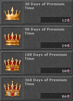O preço da Premium Account (VIP) de 1 Mês é de 1200 Tibia Coins.
